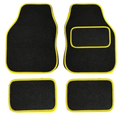 PCM Car Floor Mats for Universal or Van Tailored Heavy Duty 4PC Set Non Slip Carpet (YELLOW EDGING)