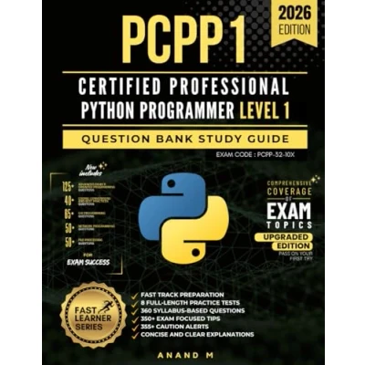 PCPP1™ CERTIFIED PROFESSIONAL PYTHON PROGRAMMER LEVEL 1 QUESTION BANK STUDY GUIDE 8 FULL LENGTH PRACTICE TESTS, 360 SYLLABUS BASED QUESTIONS, ... ALERTS, CONCISE AND CLEAR EXPLANATIONS