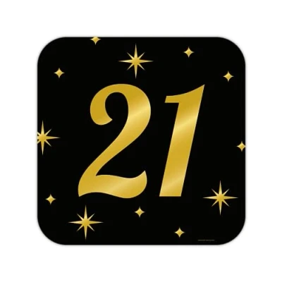 PD party 21st sign/window decoration for birthday anniversary black gold 50x50 cm