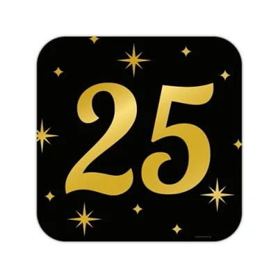 PD party 25th sign/window decoration for birthday anniversary black gold 50x50 cm