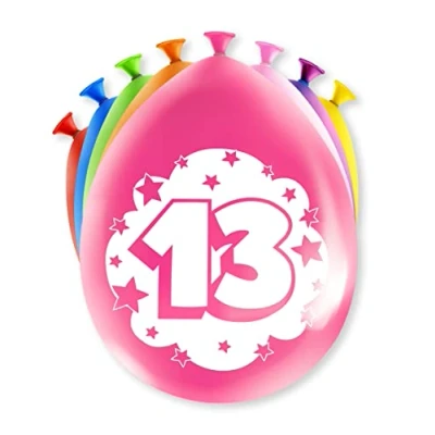 PD Party 7036549 Happy Balloons Natural Rubber (Latex) Celebration 13 Years, Pack of 8, Multicolor, 30cm Length x Width Height