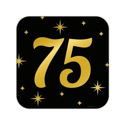 PD party 75th sign/window decoration for birthday anniversary black gold 50x50 cm