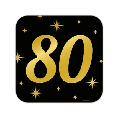 PD party 80th sign/window decoration for birthday anniversary black gold 50x50 cm