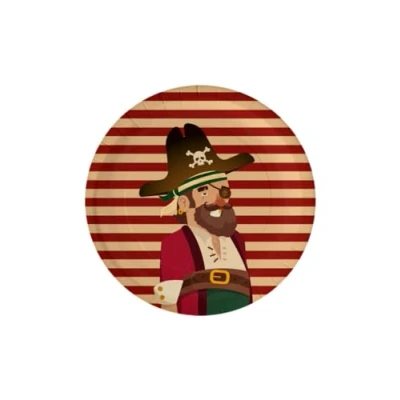 PD Party: Paper Plates in Pirate Design, 8 Pieces Disposable Tableware for Children's Birthdays with a Pattern 22.6 x cm