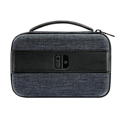 Rigid EVA case with textured fabric and leatherette details. Stores Switch console, Joy-Cons, AC adapter and games. Integrated screen stand with adjustable viewing angle and storage for up to 6 games. Console can be charged on the stand while you play using the first-party AC adapter. Officially licensed by Nintendo., Platforms: Nintendo Switch