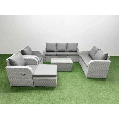 Pe Rattan Garden Furniture Set Adjustable Chair Sofa Double Love Seat 2 Seater Lounge Oblong Coffee Table Big Footstool Light Grey Fimous