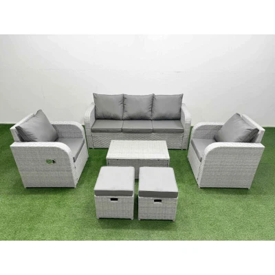 Pe Rattan Garden Furniture Set Reclining Chair Sofa Lounge Oblong Coffee Table 2 Small Stools Light Grey Fimous