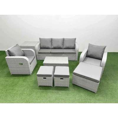 Pe Rattan Garden Furniture Set Reclining Chair Sofa Lounge Oblong Coffee Table Side 3 Stools Light Grey Fimous