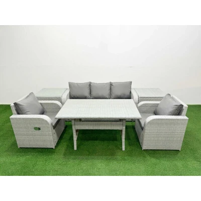 Pe Rattan Garden Furniture Set Reclining Chair Sofa Lounge Rectangular Dining Table 2 Side Light Grey Fimous
