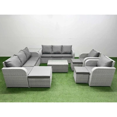 Pe Rattan High Back Lounge Sofa Set Patio Coffee Table & Chairs with 3 Seater Reclining Chair Stools Side Light Grey Fimous