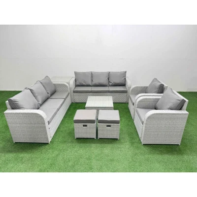 Pe Rattan High Back Lounge Sofa Set Patio Square Coffee Table & Chairs with 3 Seater Reclining Chair Stools Side Light Grey Fimous