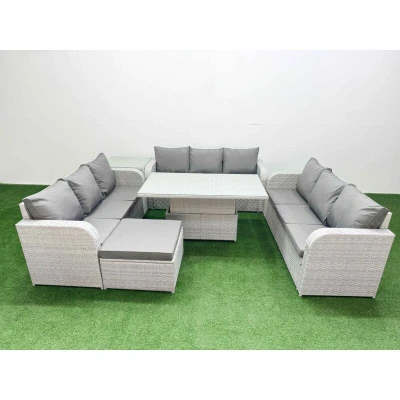 Pe Rattan Lounge Sofa Set 10 Seater Outdoor Garden Furniture with Adjustable Lifting Dining or Coffee Table 3 Big Footstool Side
