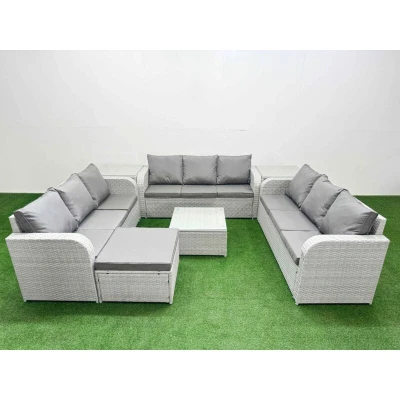 Pe Rattan Lounge Sofa Set 10 Seater Outdoor Garden Furniture with Square Coffee Table 3 Big Footstool 2 Side Light Grey Fimous