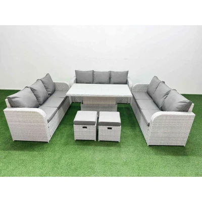 Pe Rattan Lounge Sofa Set 11 Seater Outdoor Garden Furniture with Adjustable Lifting Dining or Coffee Table 3 2 Stools Light Grey