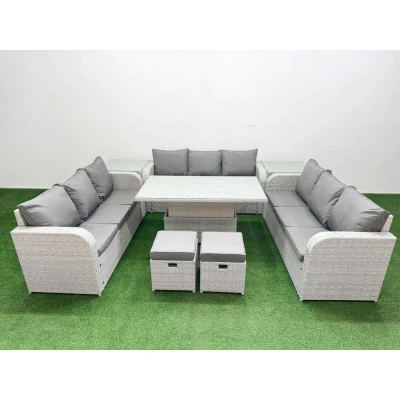 Pe Rattan Lounge Sofa Set 11 Seater Outdoor Garden Furniture with Adjustable Lifting Dining or Coffee Table 3 2 Stools Side