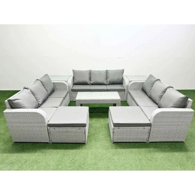 Pe Rattan Lounge Sofa Set 11 Seater Outdoor Garden Furniture with Oblong Coffee Table 3 2 Big Footstools Side Light Grey