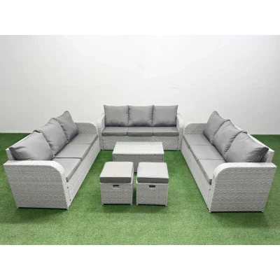 Pe Rattan Lounge Sofa Set 11 Seater Outdoor Garden Furniture with Rectangular Coffee Table 3 2 Stools Light Grey Fimous