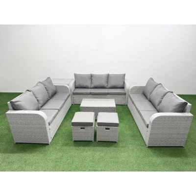 Pe Rattan Lounge Sofa Set 11 Seater Outdoor Garden Furniture with Rectangular Coffee Table 3 2 Stools Side Light Grey Fimous