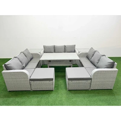 Pe Rattan Lounge Sofa Set 11 Seater Outdoor Garden Furniture with Rectangular Dining Table 3 2 Big Footstools Side Light Grey