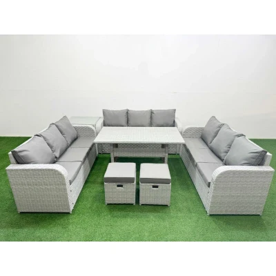 Pe Rattan Lounge Sofa Set 11 Seater Outdoor Garden Furniture with Rectangular Dining Table 3 2 Stools Side Light Grey Fimous