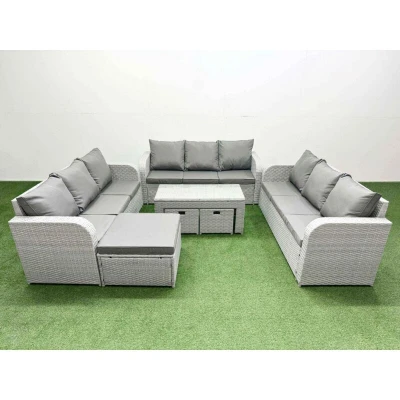 Pe Rattan Lounge Sofa Set 12 Seater Outdoor Garden Furniture with Oblong Coffee Table 3 Stools Light Grey Fimous
