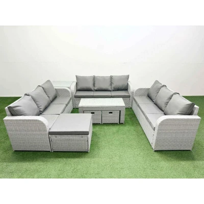 Pe Rattan Lounge Sofa Set 12 Seater Outdoor Garden Furniture with Oblong Coffee Table 3 Stools Side Light Grey Fimous