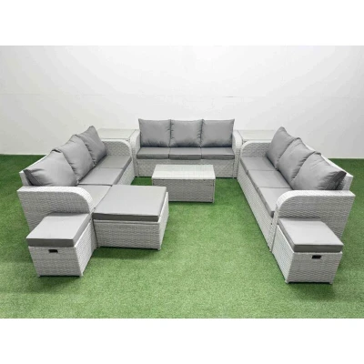 Pe Rattan Lounge Sofa Set 12 Seater Outdoor Garden Furniture with Rectangular Coffee Table 3 Stools 2 Side Light Grey Fimous