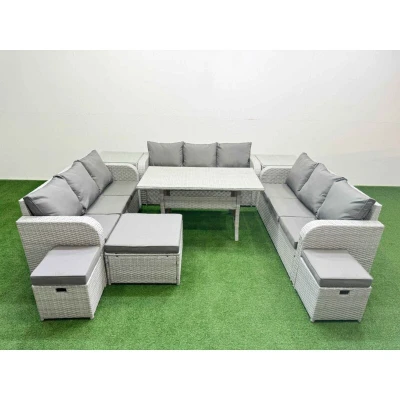 Pe Rattan Lounge Sofa Set 12 Seater Outdoor Garden Furniture with Rectangular Dining Table 3 Stools 2 Side Light Grey Fimous