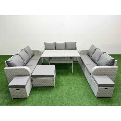 Pe Rattan Lounge Sofa Set 12 Seater Outdoor Garden Furniture with Rectangular Dining Table 3 Stools Light Grey Fimous