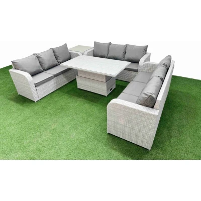Pe Rattan Lounge Sofa Set 9 Seater Outdoor Garden Furniture with Adjustable Lifting Dining or Coffee Table 3 Side Light Grey