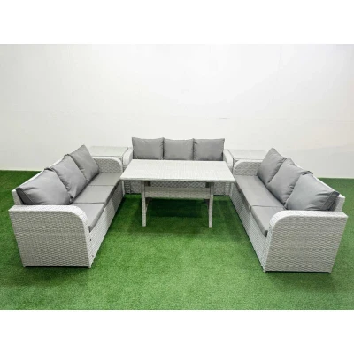 Pe Rattan Lounge Sofa Set 9 Seater Outdoor Garden Furniture with Rectangular Dining Table 3 2 Side Light Grey Fimous