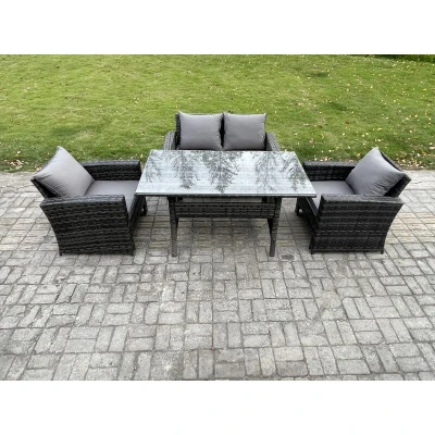 Pe Wicker Outdoor Garden Furniture Set Patio Rattan Rectangular Dining Table Lounge Sofa Dark Grey Mixed Fimous