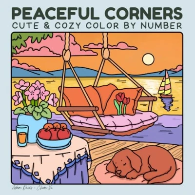 Peaceful Corners: Cute and Cozy Color by Number for Teens Adults: 40 Designs Relaxation Stress Relief