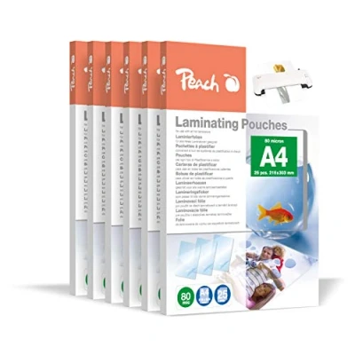 Peach Laminating Pouches A4 80 mic 600 Premium Quality for Best Results Compatible with Devices of All Brand Manufacturers Glossy PP580 60A