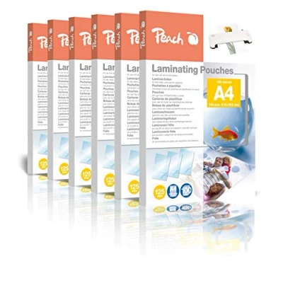 Highlights: 6 x jumbo packs. Superior quality for best results every time. Performance: Laminating makes the documents waterproof, tear-resistant, more colour-intensive and extremely stable. Format: Holds documents up to A4 size which corresponds to 216 x 303 mm. Protection: The laminating pouches have a film thickness of 2 x 125 microns and offer the best possible protection for documents. Contents: The set contains 6 x 100 pieces.