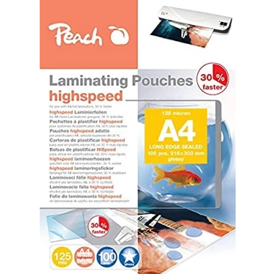 Peach PP525 22 High Speed Laminating Pouches A4, 2 x 125 microns, 100 Pouches, Glossy Finish, Compatible with Devices of All Brand Manufacturers