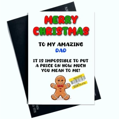 Peachy Antics Merry Christmas Card for Dad Funny Reduced Sign Joke Holiday Greeting Humorous Xmas Him Gifts Family Present SP323