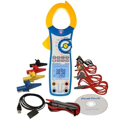 PROFESSIONAL DEVICE: The P 1660 clamp meter for measurements up to 1000 A AC provides a case that ensures a safe handling during measurements and it is suitable for industrial applications. MEASURING FUNCTION: Additional functions such as measurement of current- and voltage alternating current, true power, apparent power, reactive power, energy, power factor, frequency and phase angle ACCESSORIES: Carrying case with shoulder strap, 4x Connection cables, 4x Aalligator clips, 2x Safety-test leads, USB interface cable, Software for Windows, Battery and Operation manual. LCD DISPLAY: The high-quality current probe with an illuminated display has a 3 5/6-digit LCD screen. Protection class: CAT III 1000 V CAT IV 600V - The current clamp is suitable for electricians INFO: Security: EN 61010-1 CAT IV 600 V; Backlight; 9.999 counts; Additionally: TrueRMS for measuring effective values and automatic switch-off available. Dimensions: 100 x 295 x 45 mm, weight: 540 g, Weight: 1.10231131 pounds, Manufacturer: PeakTech