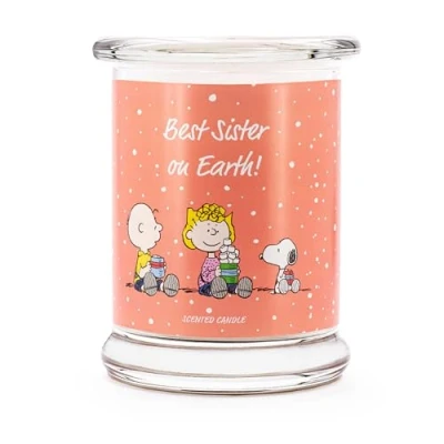 Peanuts Gift Idea Scented Candle Best Sister on Earth Gifts for Fresh Laundry Decoration Home in Glass with High Burning Time up to 50 Hours