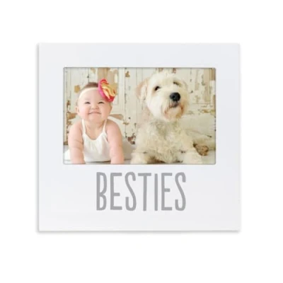 Pearhead Bestie and Baby Keepsake Frame Wood Photo for Pet, with Easel Back Wall Hanger, Perfect Gender Neutral Nursery Decor, White