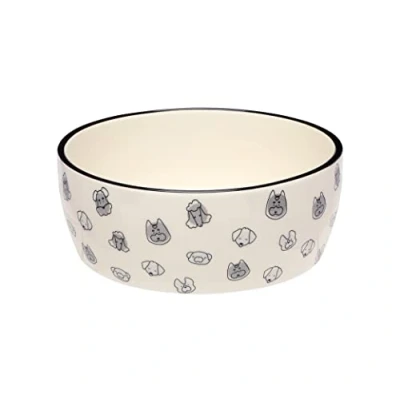 9-cup capacity for large dogs: This extra-large ceramic bowl holds up to 9 cups (72 oz) of food or water, making it ideal for medium to large breed dogs, multi-pet households, or meal-and-water setups. A single stylish piece that meets your pet’s daily needs without constant refilling. Charming dog-faces pattern in neutral décor-friendly tones: Featuring playful breed-face graphics in black and grey with a sleek black rim, this bowl becomes a design element in your home, easily blending with modern, farmhouse, or minimalist décor. Pet owners love how it complements their space while showing off their four-legged best friend. Durable ceramic construction built for everyday use: Crafted from premium ceramic, this bowl offers a sturdy, weighted feel that helps resist tipping or sliding on hard floors. Its solid base supports active eaters and ensures the bowl stays in place. Easy to care for — hand wash recommended for best finish: To maintain the bowl’s vibrant pattern and smooth ceramic finish over time, we recommend hand washing the bowl. This simple care routine helps preserve the design detail for years to come. Perfect gift for dog lovers and new pet households: With its generous size, stylish design, and brand reputation for pet-friendly home accessories, this bowl makes an excellent adoption gift, housewarming present, or upgrade for your own home. Ideal for any dog owner looking for quality + function in one piece.