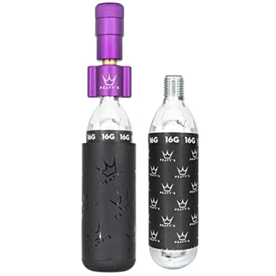 Peaty's Holeshot CO2 Tyre Inflator Kit 16g Premium Unique Compact Straight Line Design for Maximum Airflow & Rapid Inflation, 2x16g Freeze Protector Sleeve, Road Gravel Bike (16g) Violet