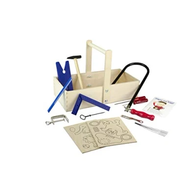 Fretsaw set in practical wooden joinery box with steel tools Fretsaw, fretsaw table, ferrule, fretsaw blades, fretsaw key 2 wooden templates, angle, ring drill, screwdriver (slotted), round file, hammer, ruler, instructions (English language not guaranteed) Size: 21 x 40 cm Saw fun for young and old - made in Germany, Manufacturer: Pebaro