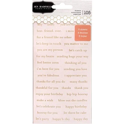 These stickers are the perfect finishing touch to cards, scrapbook pages and more This package contains 105 assorted stickers on three 3.5x6.5 inch sheets