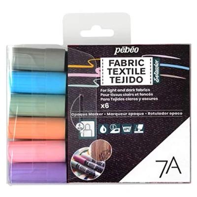 Pebeo 7A Opaque Pastel Fabric Marker - 4M, Set of 6 Suitable for application on light and dark fabrics Markers with a 4 mm tip
