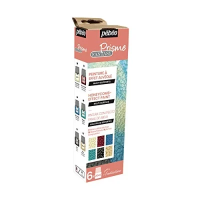 Go CraftExplore stunning honeycomb effects with the Pebeo Fantasy Prisme Initiation Set. This set of six vibrant, self-reactive paints creates mesmerizing cellular textures, perfect for adding depth and dimension to your artwork.. Set of 6 Unique Colors: A versatile selection for bold and dynamic designs.. Self-Reacting Formula: Paint naturally forms intricate honeycomb patterns as it dries.. Glossy, Opaque Finish: Delivers rich, professional-quality results.. Multi-Surface Application: Ideal for wood, metal, glass, canvas, and more.. Perfect for artists, crafters, and mixed media enthusiasts, this initiation set offers an easy way to experience the magic of Pebeo Fantasy Prisme paints.