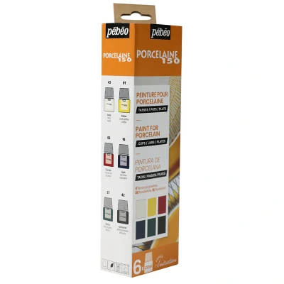Transform ceramics with vibrant, glossy color using the Pebeo Porcelaine 150 Initiation Set (6 x 20ml). This high-quality paint set is specially designed for decorating porcelain, ceramic, and glass, providing long-lasting results with a professional finish.. 6 Assorted Colors: A versatile selection for creative designs and fine details.. Glossy, Smooth Finish: Delivers a sleek, professional look on ceramic surfaces.. Heat-Set for Durability: Bake in a home oven for a dishwasher-safe, permanent result.. Multi-Surface Use: Ideal for porcelain, ceramic, glass, and earthenware.. Perfect for artists, crafters, and DIY enthusiasts, the Pebeo Porcelaine 150 Initiation Set allows you to create custom, high-quality designs with ease.