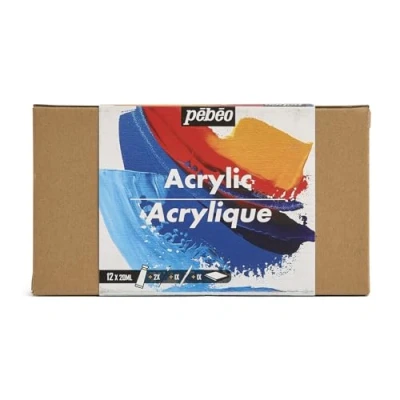 SET 12 TUBES 20 ML ASSORTED COLOURS + ACCESSORIES: This kit includes 12 tubes of acrylic (Opaque Primary Yellow, Imitation Cadmium Orange, Imitation Cadmium Red, Primary Magenta, Oriental Violet, Opaque Primary Cyan, Phthalocyanine Emerald, Burnt Sienna, Mars Black, Titanium White, Gold, Silver) of 20 ml, 2 quality brushes, 1 spatula for precise application, and 1 canvas board to bring your artistic creations to life. STUDIO ACRYLICS HIGH VISCOSITY: a satin-finish acrylic paint specially designed for artists and beginners who enjoy working with matter and creating captivating textures. You can use it pure for intense effects or mix it with Pebeo mediums to explore an infinite range of artistic techniques. ADVANTAGES OF STUDIO ACRYLICS: with its exceptional adhesion and resistance after drying, your works will remain intact and vibrant over time. What's more, this kit features three true primary colours, guaranteeing a harmonious blend and endless creative possibilities. INFINITE BLENDING: an identical paste consistency from one colour to the next makes mixing much easier, allowing you to explore new shades with confidence. Finally, whatever colours you use, our Studio Acrylics High Viscosity offers a uniform satin matt appearance after drying, ensuring exceptional visual consistency in your works. THE STUDIO ACRYLICS KIT: the uniform satin matt appearance obtained after drying remains consistent, whatever the colour used. The High Viscosity Acrylics Studio Kit gives you the tools and materials you need to bring your creativity to life and create exceptional works of art.