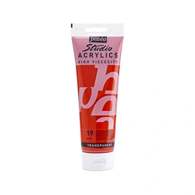 PEBEO Studio Acrylics Fine Acrylic Paint Transparent Vermilion, 250 ml