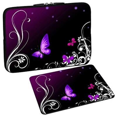 PEDEA Design Laptop Case Sleeve for up to 17.3 inch with mouse pad, Purple Butterfly